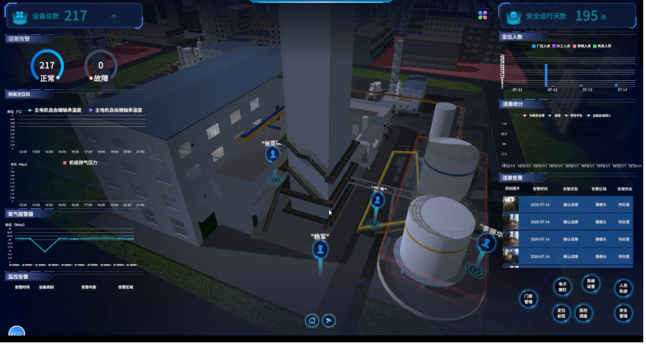利用數字化技術對裕泰化工的焦化廠、裕隆化工、燃氣三個廠區建模,實現人員行為管理數字化、可視化、信息化。