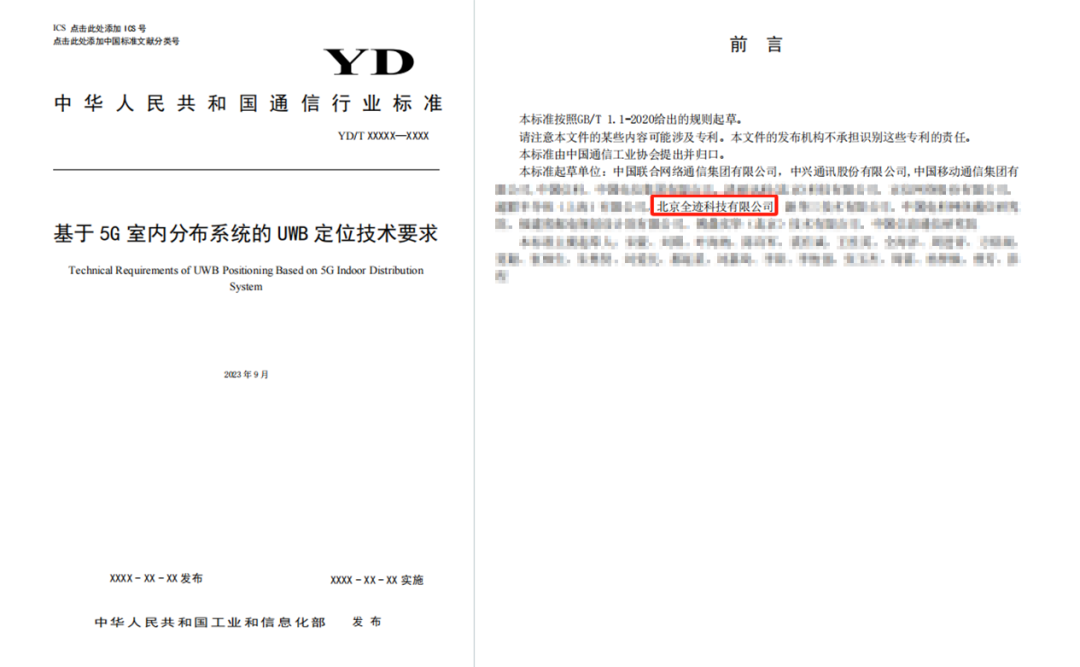 全跡科技參編制定5項UWB國家和行業標準近期頒布