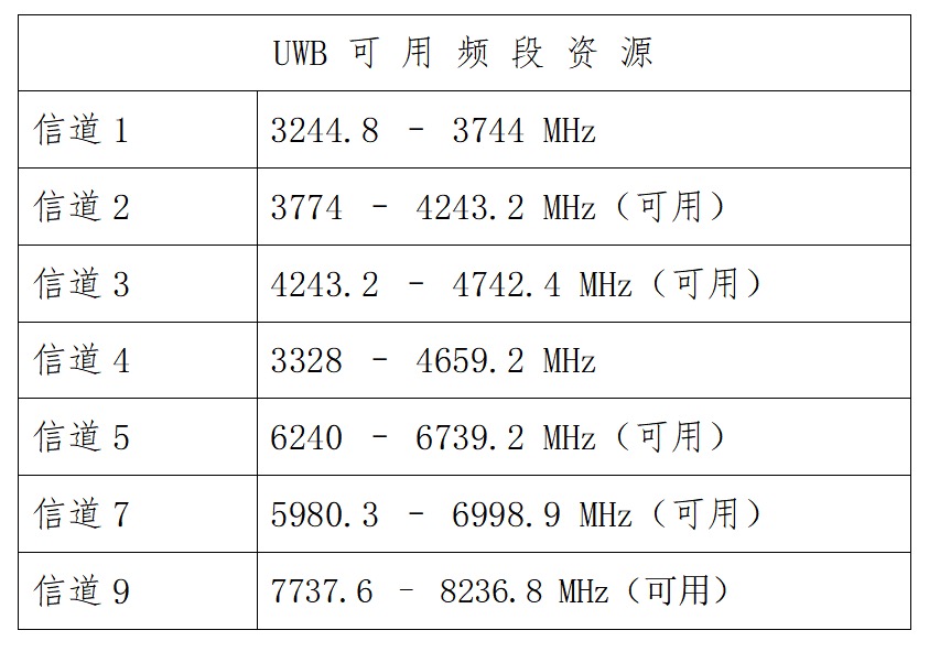UWB頻段資源如下 :