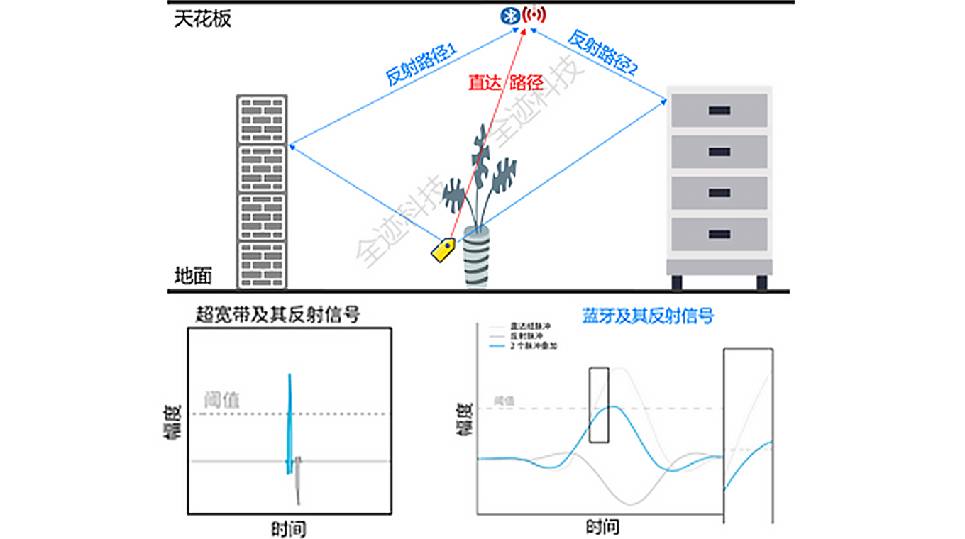 藍(lán)牙AOA:藍(lán)牙技術(shù)無法區(qū)分直達(dá)和反射路徑,測得的是包含墻壁等障礙物反射后的混疊信號(hào),在復(fù)雜環(huán)境下定位精度低、穩(wěn)定度差。