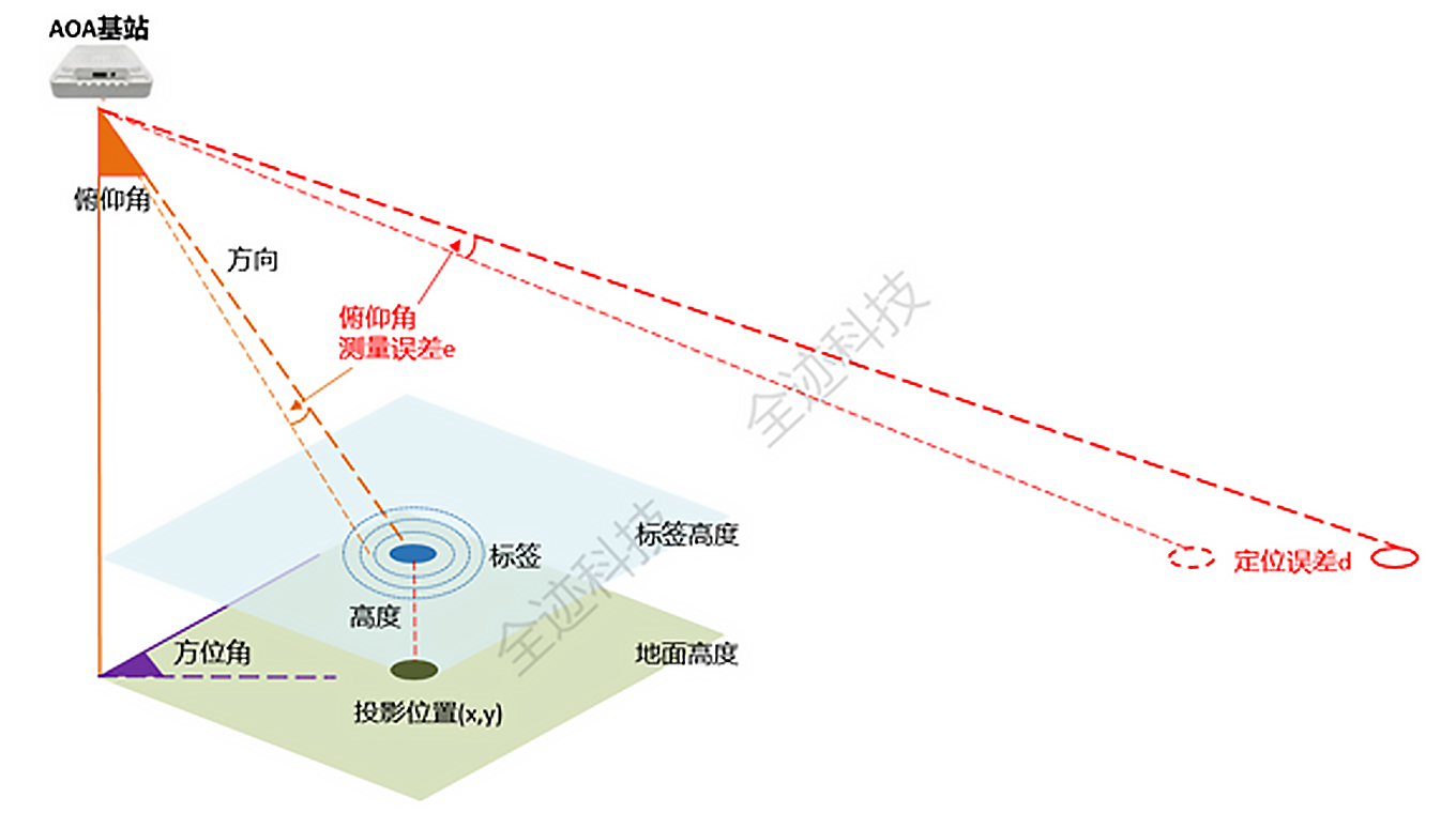而UWB-AOA可以通過TOF精確測距。定位原理是先測方向,再沿著該方向測量標(biāo)簽距離,單臺(tái)基站可以直接輸出標(biāo)簽的3D坐標(biāo),該坐標(biāo)的投影是2D坐標(biāo)。誤差變得非常小,而且不隨俯仰角范圍有明顯變化。在實(shí)際設(shè)計(jì)中,全跡的UWB-AOA基站配合良好的天線設(shè)計(jì)可以覆蓋近乎0~90°俯仰角的完整半球。