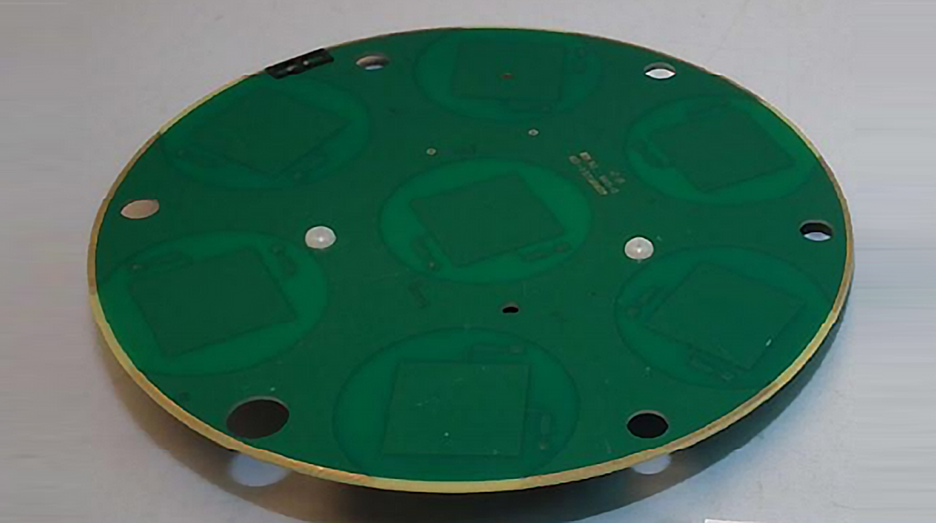 還有些次要原因造成藍(lán)牙AOA俯仰角小,比如藍(lán)牙天線是2.4G,頻率比UWB低,天線尺寸比UWB大,很難做出小尺寸同時(shí)兼顧0~90°全范圍俯仰角的天線設(shè)計(jì)。藍(lán)牙天線通常采用貼片排布的PCB天線(下圖),在測量俯仰角時(shí),隨著俯仰角變大角度分辨率逐漸降低,性能變差。