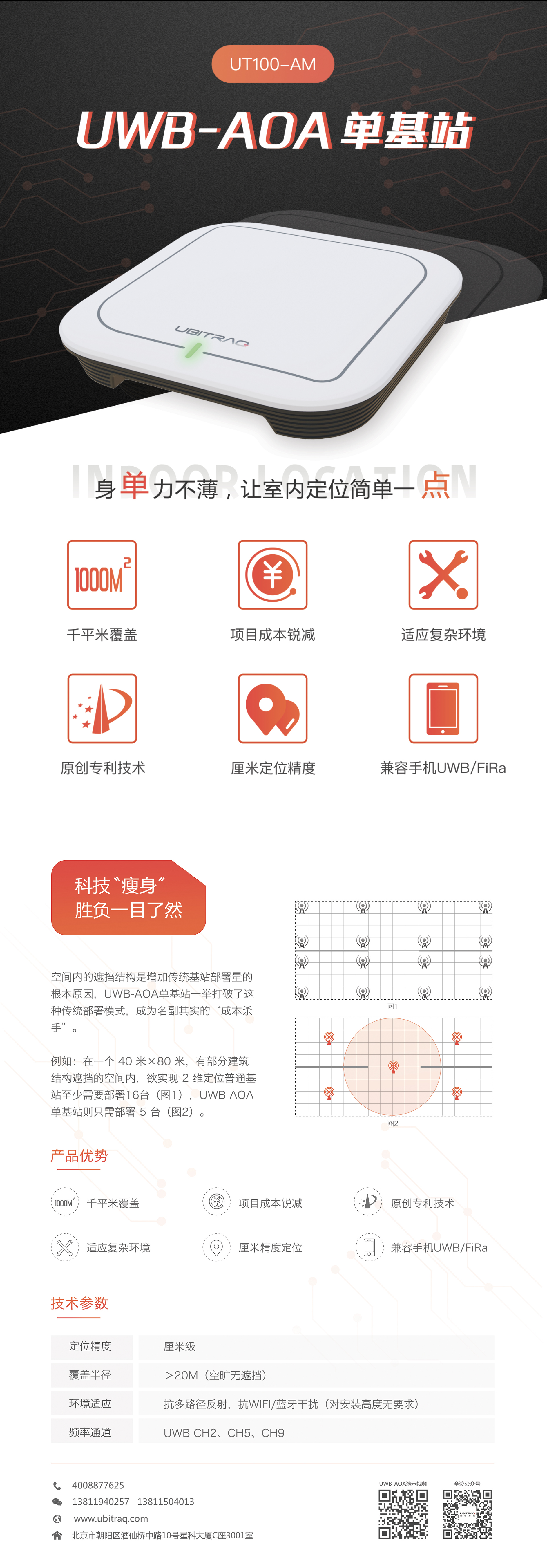 UWB-AOA:單基站覆蓋半徑>20米,對(duì)安裝高度無要求