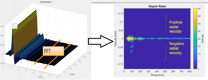 2.當周圍物體運動時,由于多普勒效應,對應的CIR值就會變化。通過分析CIR頻譜來估計運動狀態(tài)。目前常見500M帶寬的UWB芯片,靜態(tài)位置分辨率較低,但可以用作動態(tài)雷達,來檢測物體的運動。