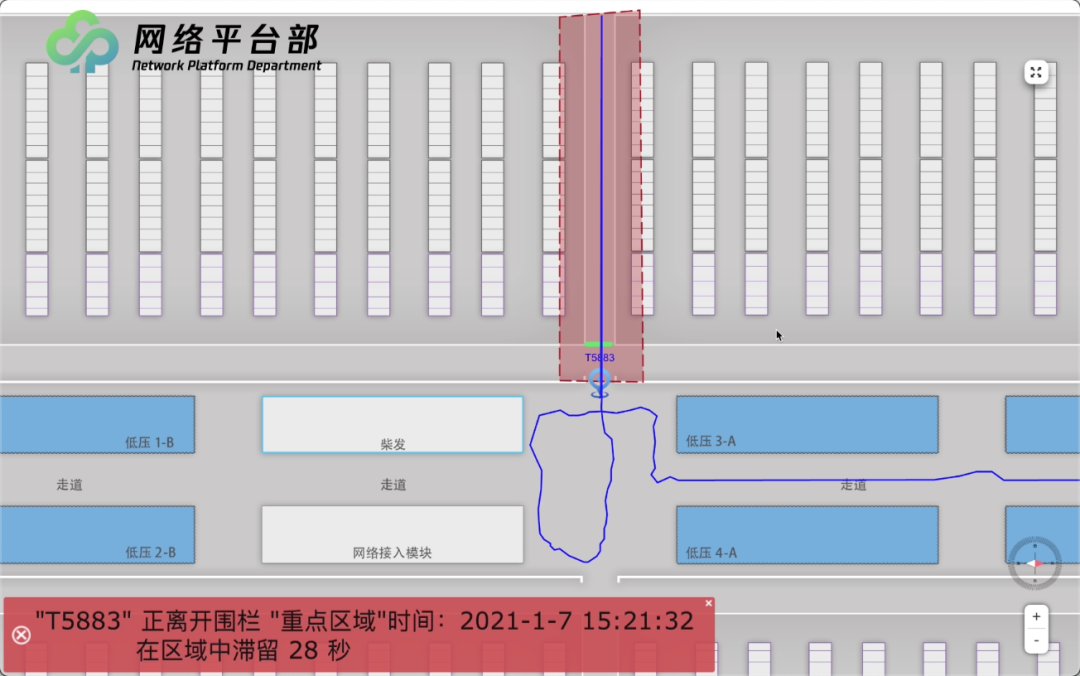 安全預(yù)警:通過設(shè)置電子圍欄,并和人員權(quán)限綁定,UWB定位系統(tǒng)能夠?qū)`規(guī)進出圍欄、超時停留、非法入侵等安全隱患及時發(fā)出告警通知。